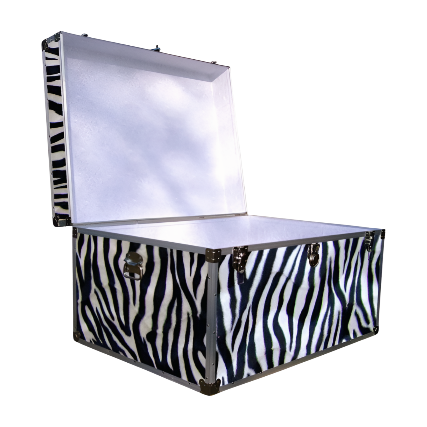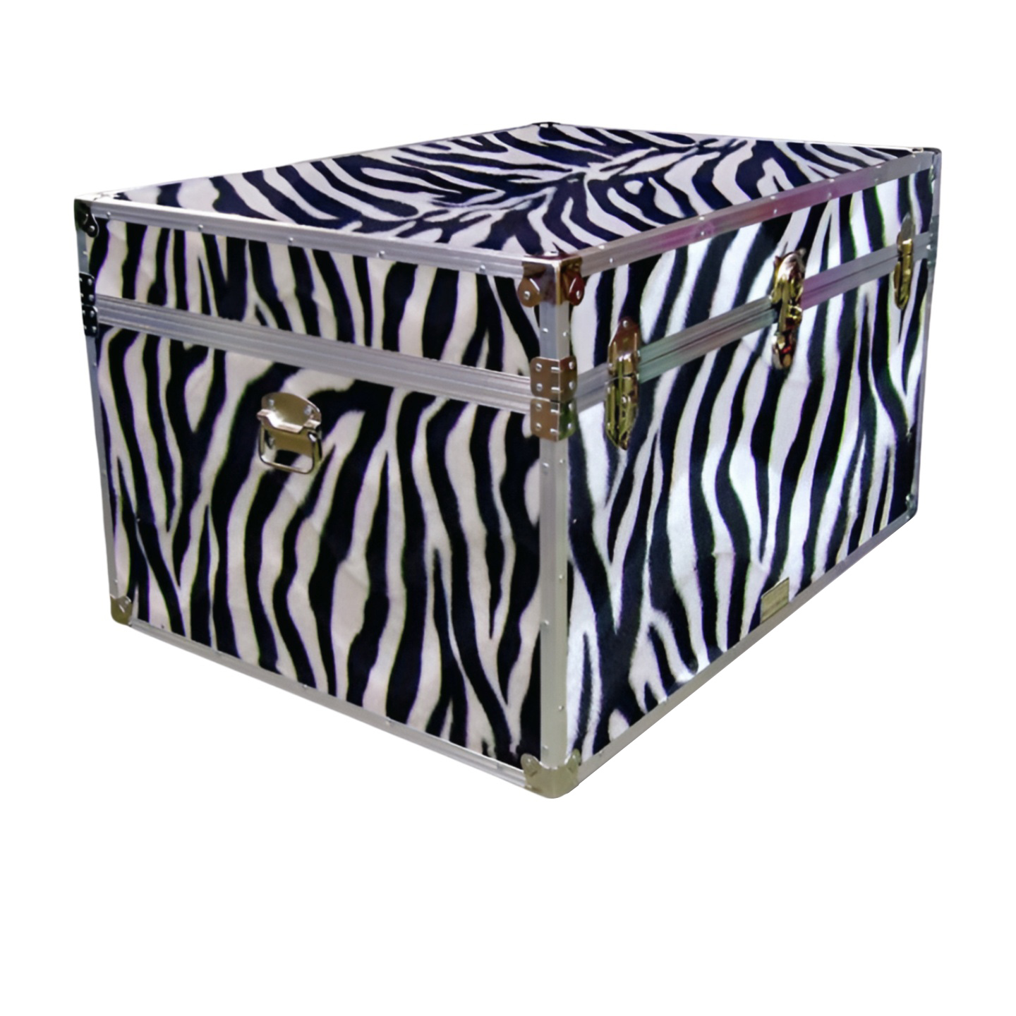 01-221 ZEBE FAUX ZEBRA Super Jumbo Storage Trunk with Alloy Trim