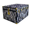 polyester and rayon woven and backed fabric in black. Internally the trunk is finished with white impala patterned woven fiber paper.