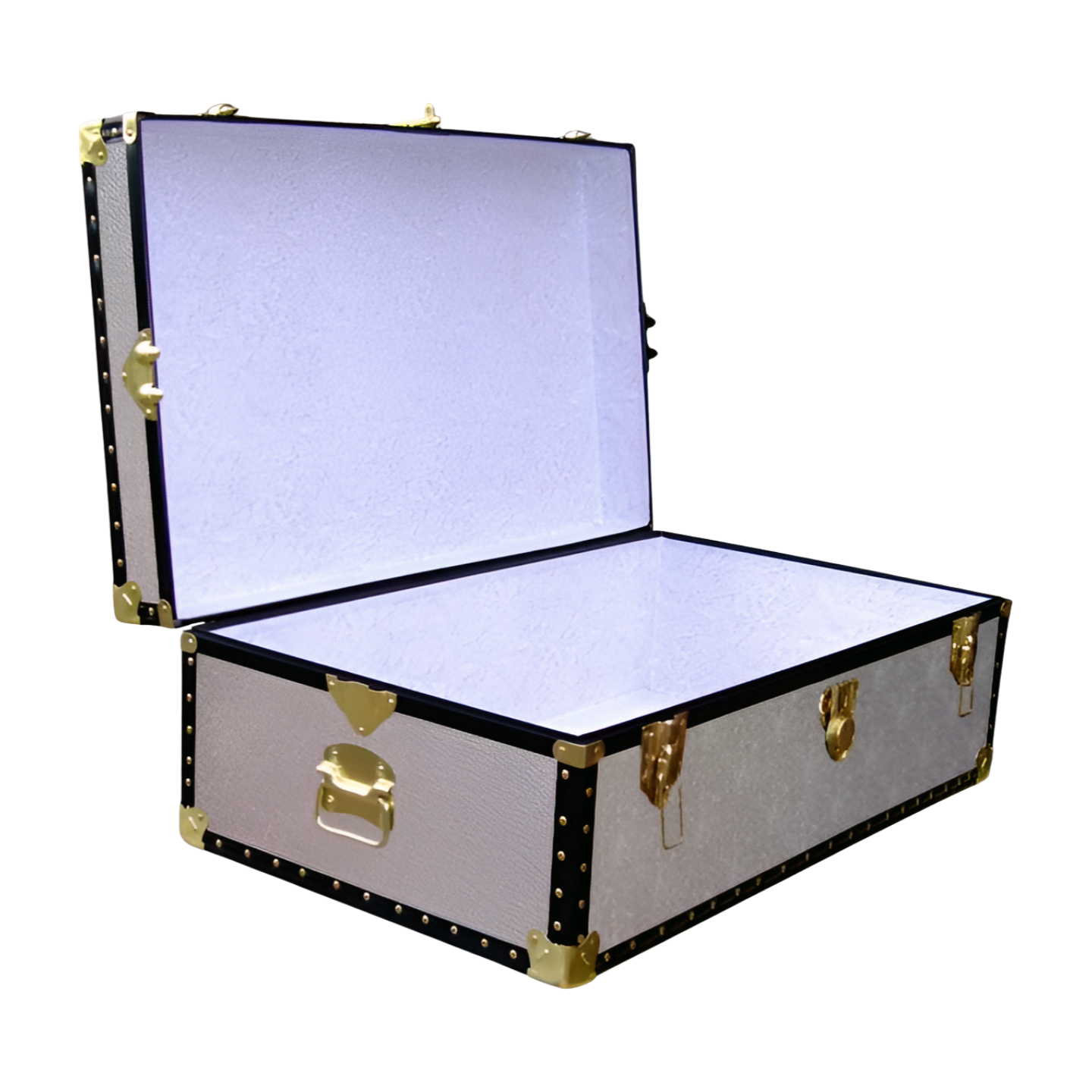 This trunk is constructed using a strong, impact resistant, black ABS frame with an interlocking body and lid system with a hinged lid.