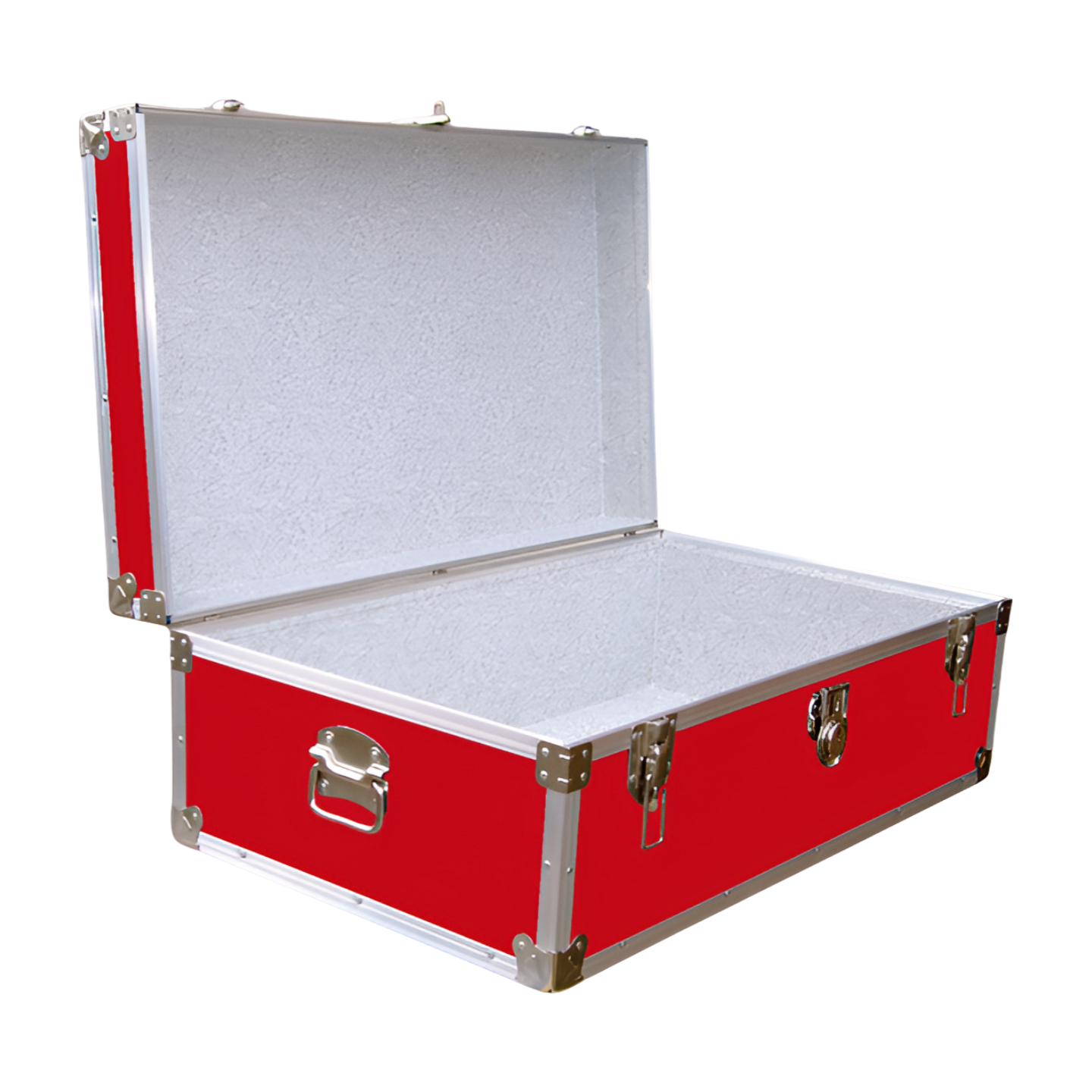 This trunk is constructed using a very strong and rigid alloy frame with interlocking body and lid system with a hinged lid.