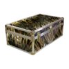 This trunk is constructed using a very strong and rigid alloy frame with interlocking body and lid system with a hinged lid.