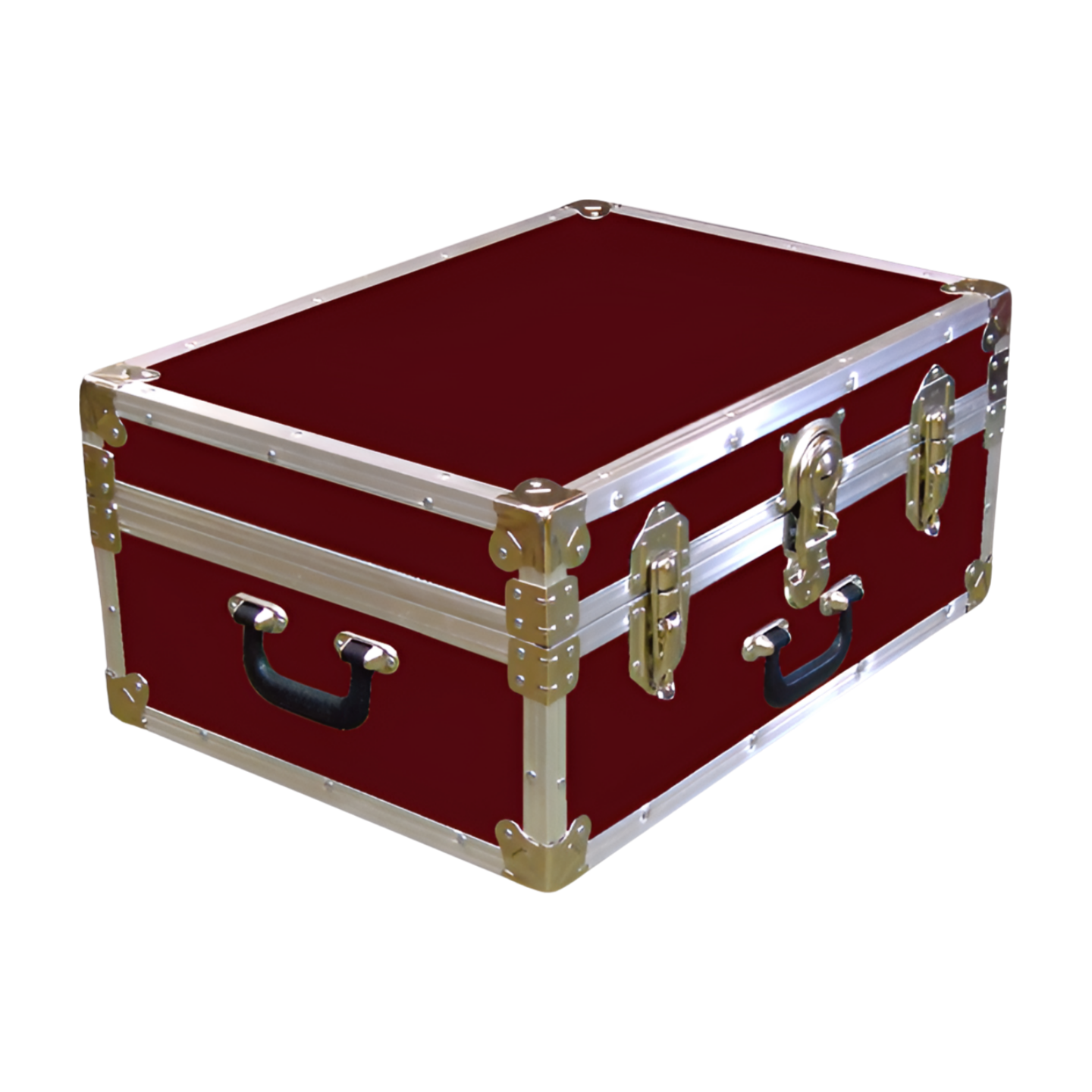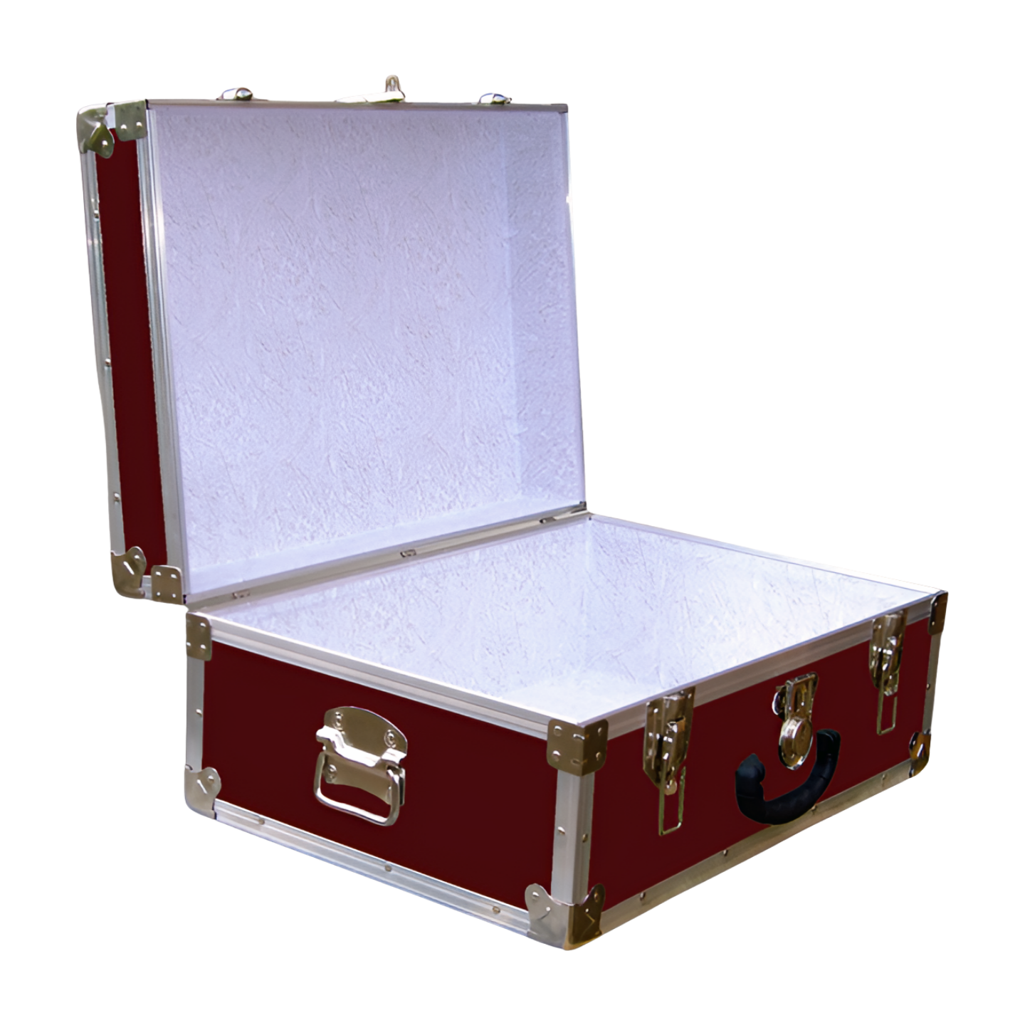 This trunk is constructed using a very strong and rigid alloy frame with interlocking body and lid system with a hinged lid.